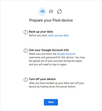 Make sure your Google Pixel has at least 35% battery, then you can proceed with the password-free reset:
