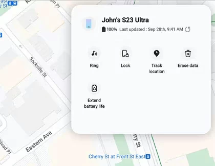 Similar to Google Find Hub, some brands come with their unlock services to help users locate, secure, and even unlock the Android device through a remote erase using a map interface.