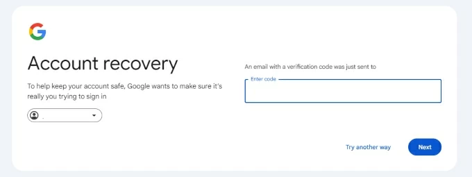Step 3. Google may send a verification code, a prompt to another device, or a security question to verify your identity.