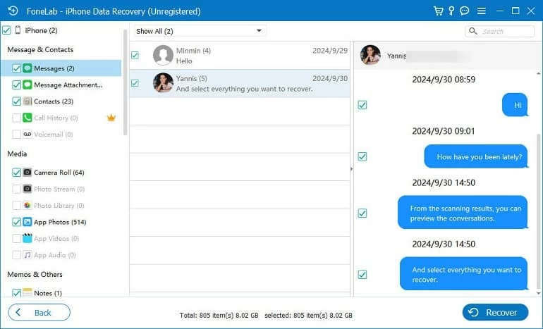 If you're perturbed about the recovery of any messages that you've lost or deleted by mistake, give iPhone Data Recovery a try. You will find it easier to retrieve the deleted text messages on iPhone 16, saving you out especially if your missing texts haven't been backed up, or if you can't find the recently deleted messages via the intelligent iOS 16 Recently Deleted album.
