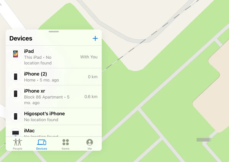 2. Locate the "Devices" tab at the bottom and select your locked iPhone.