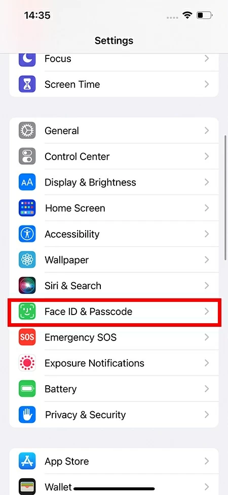 Note that some iOS versions show Touch ID & Passcode option. Regardless of how it is named, tap on this option.