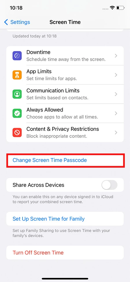 2. Change Screen Time passcode: Tap Change Screen Time Passcode and tap Change Screen Time passcode again.