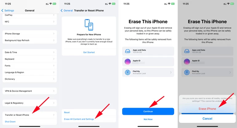 2. Select General > Transfer or Reset iPhone > Erase All Content and Settings.
