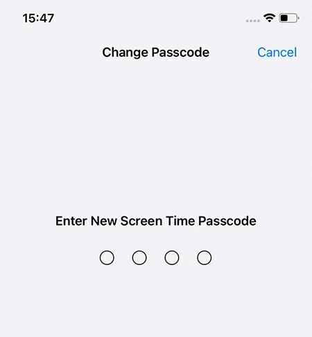 Once enabled, you have the option to set a 4-digit Screen Time passcode which is different from the lock screen passcode and is used exclusively for accessing and modifying Screen Time restrictions and settings.