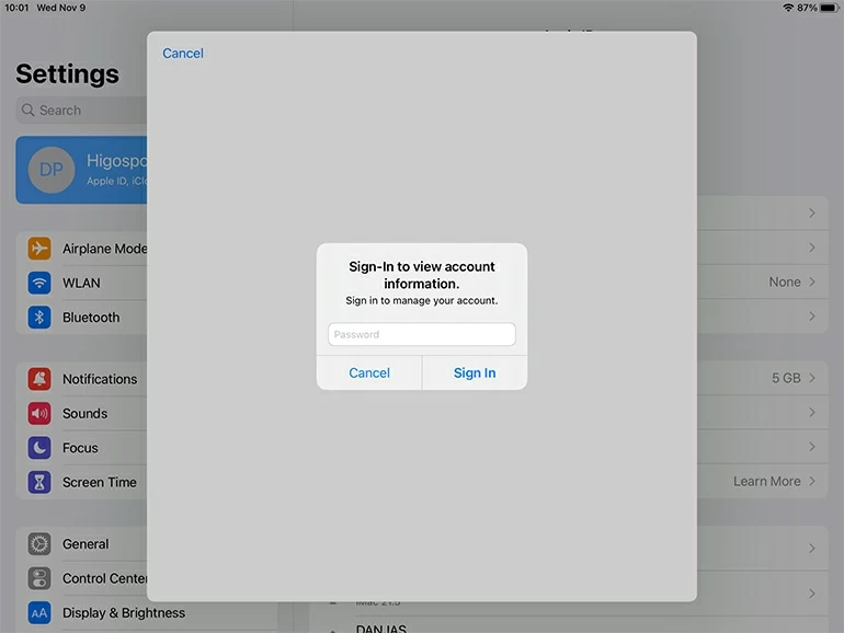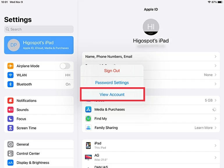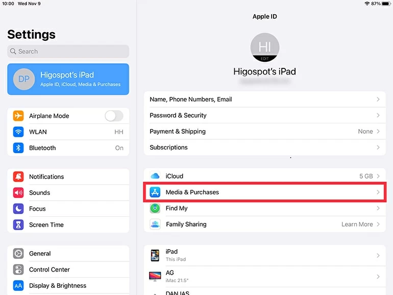 1. Go to Settings in your iPad and tap your name. Select Media & Purchases.