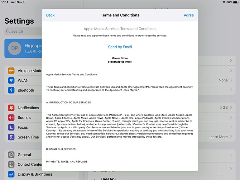 7. Review the Terms & Conditions first, and tap Agree. Tap it again if a prompt shows up later.