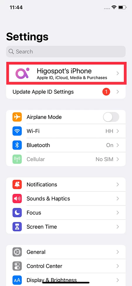 1. Open Settings on your iPhone, and tap on your name at the top.
