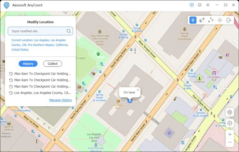 5. After you click the Confirm Modify option, the location on the interface will immediately jump to the place you selected, and your iPhone's location settings will be changed successfully.