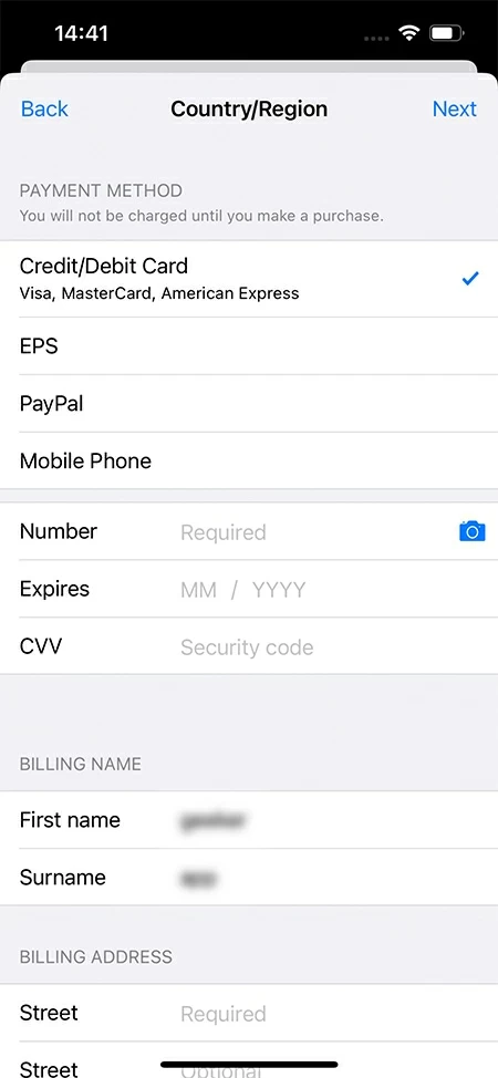 This method is very troublesome, with many steps and a lot of information to fill in. And you also need to pay attention to the region or country address you are converting to see if you have the right payment method. Therefore, this method is more suitable for users who want to change an area of their lives for a long time.