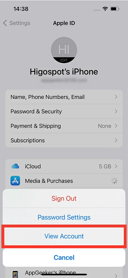 2. Then choose View Account option and enter Apple ID password to sign in.