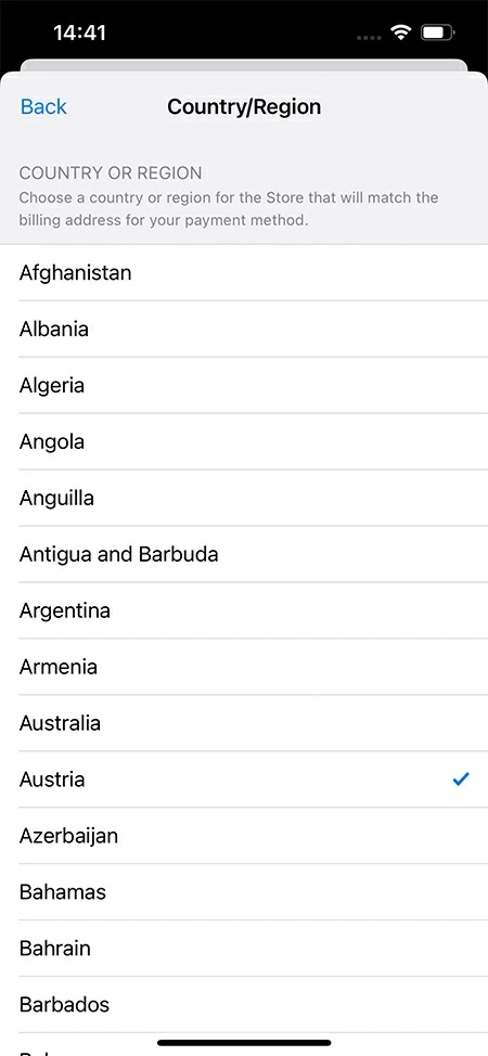 Step 6. Select the country or region that you want to change to on your iOS device.