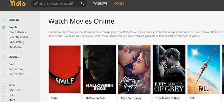 In Addition to this filter, filters regarding popularity and date are also available, giving you the best user experience. Renting and buying movies is also one of the most incredible features offered by Yidio. If we talk about the cons, streaming through other sites and incorrectly labeling some paid movies as free makes the website less demanding and engaging.