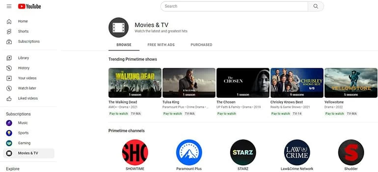 Most movies are free, but you still have to pay for newly released content. Although it is a home for a bunch of free films, it is supported by ads that can add a slight annoyance to your relaxed time.
