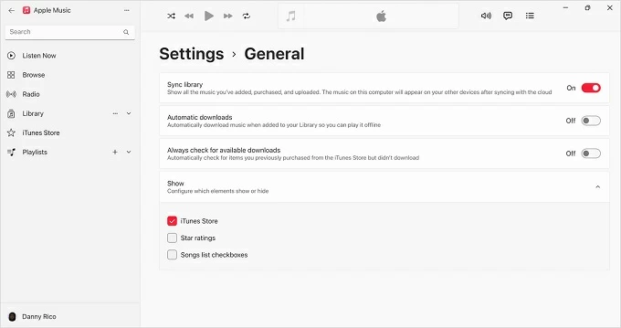 Enable Sync Library on Apple Music for Windows: