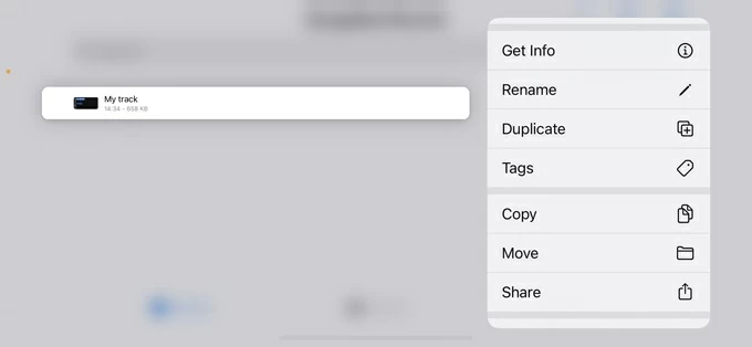 5. Tap the arrow icon, choose My Songs, long-press the project, then tap Share.