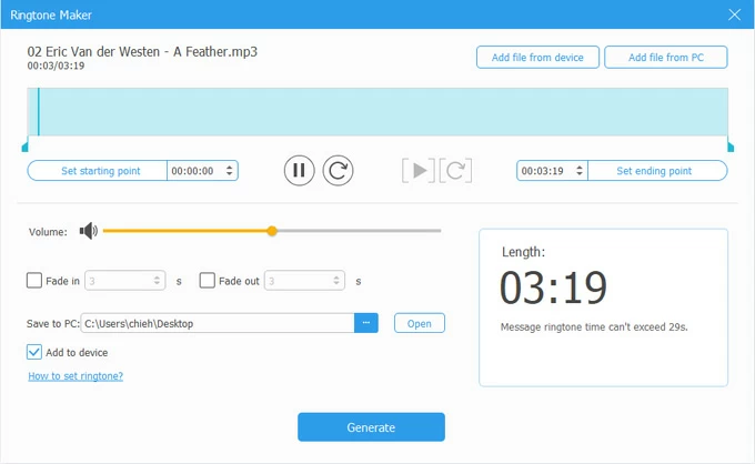Follow these steps to convert MP3 into iPhone ringtone format (M4R) and add to your device.