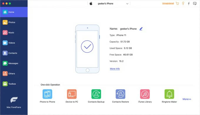 Step 1. Open the software, and connect your iPhone to the Mac. Your device should appear on the screen with basic info.