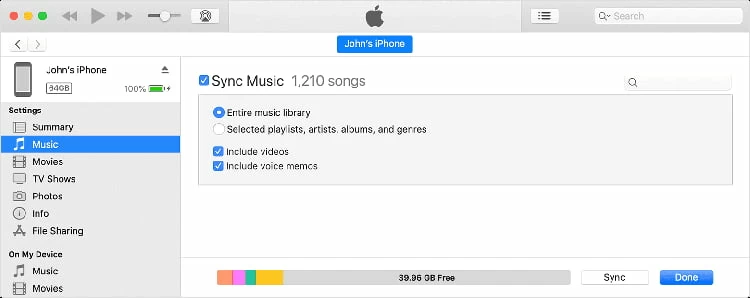 Unlike drag-and-drop file transfer, iTunes uses a syncing model. This means the iPhone mirrors the music library or playlist you select. Once you put music on iPhone from iTunes library, it may also appear from the iPhone, and your current music files on the device will be deleted after syncing.