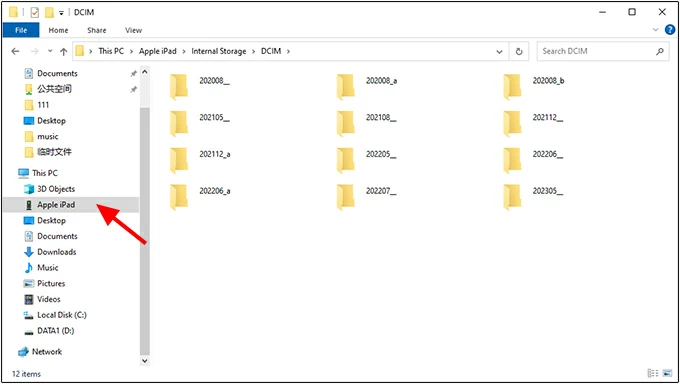 If the Photos app fails to transfer photos from iPad to PC free, go with File Explorer, which exposes the iPad's DCIM folder so you can drag and drop images directly to your PC.