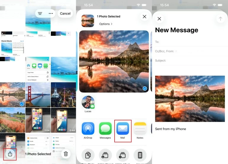 The Mail app offers a low-tech method to download photos from your iPhone to a Mac. While it's less efficient for large-volume transfers due to attachment size limits, it's the perfect solution for instantly sending one or two important photos, especially when you need to access them on your Mac right away to add to a document or share with non-Apple users.
