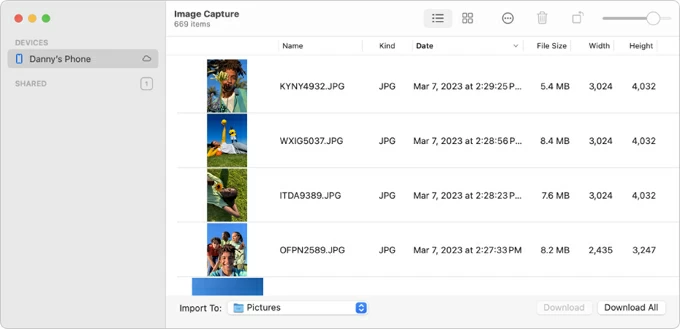 If you prefer more control over where your photos are stored, Image Capture is a lesser-known but powerful macOS utility. It's ideal for users who want to treat photos purely as files and save them to a specific folder outside of the Photos library (such as an external drive, desktop folder, or third-party photo management app), making it a more suitable choice for transferring your photos from iPhone to Mac in those scenarios.