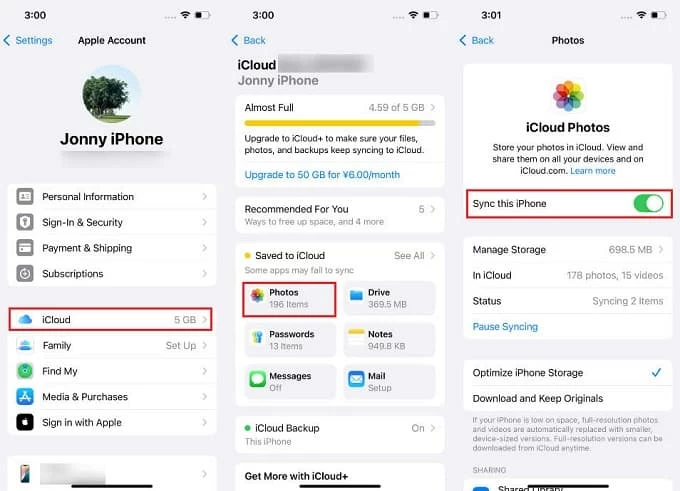 Note: This method heavily relies on your iCloud storage space, which only offers you 5GB of free space. If your photo library is large, consider upgrading your iCloud plan.