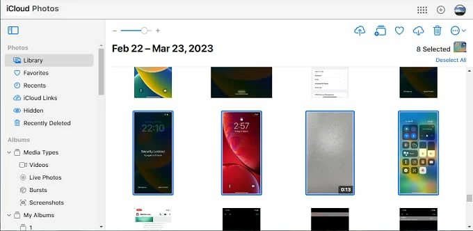 4. Click the Upload icon from the upper-right corner on iCloud Photos screen.