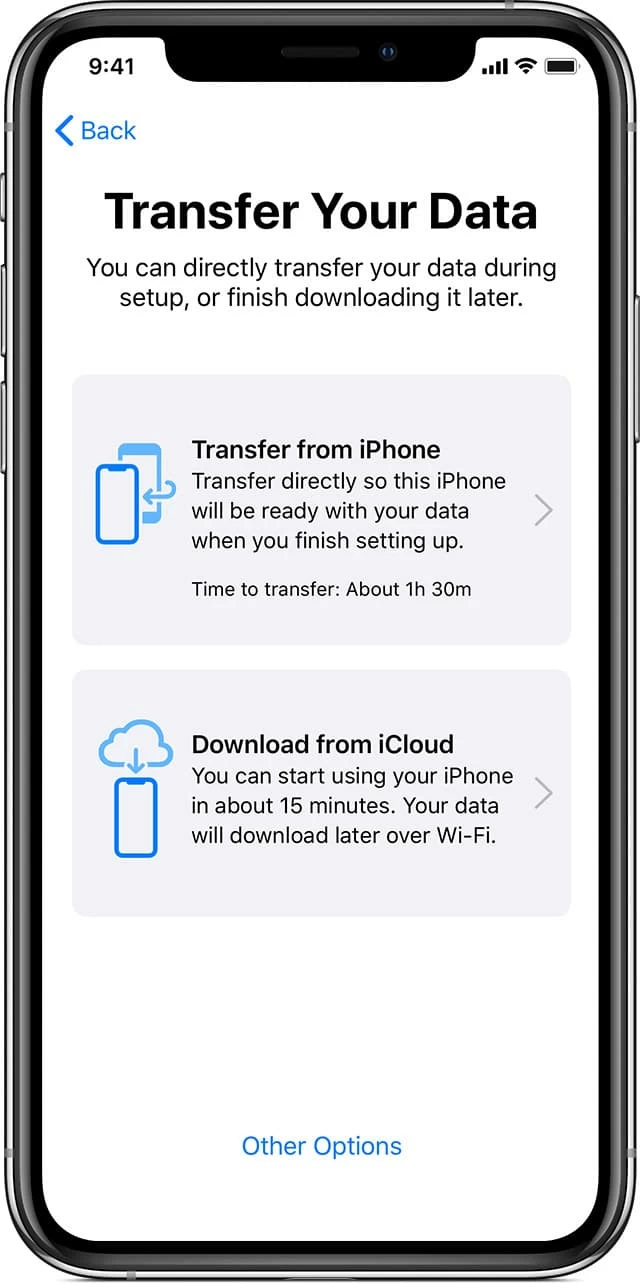 If you're transferring photos from an old iPhone to a new iPhone, Apple has the smoothest ecosystem options. You can migrate all photos during the setup or wirelessly move them after setup.