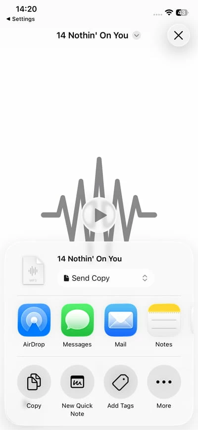 4. Tap Accept on the new iPhone when prompted. The file will save to the Files app (not directly into Settings > Sounds path).