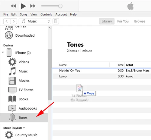 4. Drag the .m4r ringtone(s) into the Tones section of iTunes. If you don't see Tones, enable it by going to Edit > Preferences > General, then check Tones.