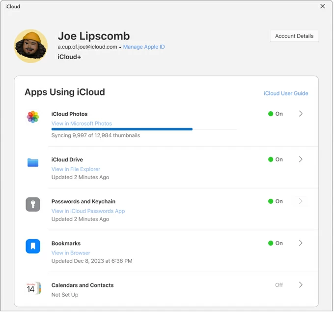 2. On PC, install iCloud for Windows, sign in with your Apple account.